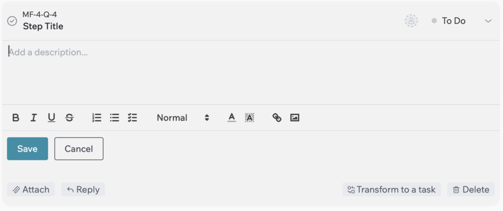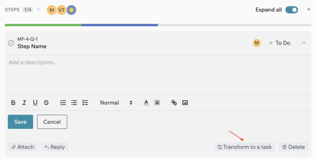 If a step becomes large or requires more detailed tracking, you can convert it into a full task.