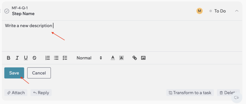 - Click on the description field, make changes, and then click “Save” to apply or “Cancel” to discard.