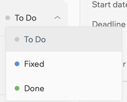 - Status – choose one of the following: To Do, Fixed, or Done.
