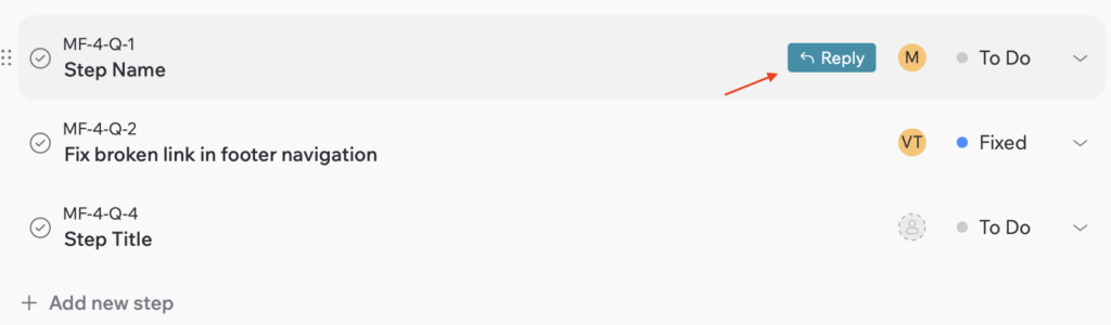 Each step has its own status, separate from the main task. To update it, click on the status field in the step line and choose one of the available options.