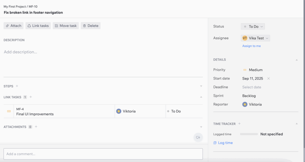 After that, the step will be transformed into a task in the same project with all details saved, including the description and assignee, and you will be redirected to the Task Page.